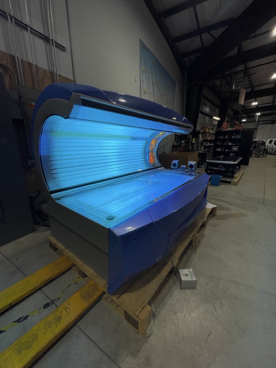 The all-new Inspiration 550 Ergoline combines trusted Smart Performance lamp technology in a compact 42 UV lamp frame. Features include decreased power consumption, and longer lamp life, ultra performance facial tanning technology, Comfort Cooling and 3D sound.